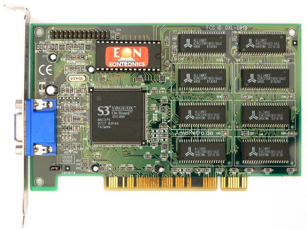 Eine S3 ViRGE-Karte der zweiten Generation, mit der man in einem Retro-Rechner mit DOS-Schwerpunkt nicht viel falsch machen kann. Die Karte ist unter DOS schnell und kompatibel und bietet unter Windows dank 4MB Speicher auch höhere Auflösungen an. 3D-Beschleunigung, die dem Wortsinn entspricht, darf man allerdings nicht von dieser Karte erwarten.
