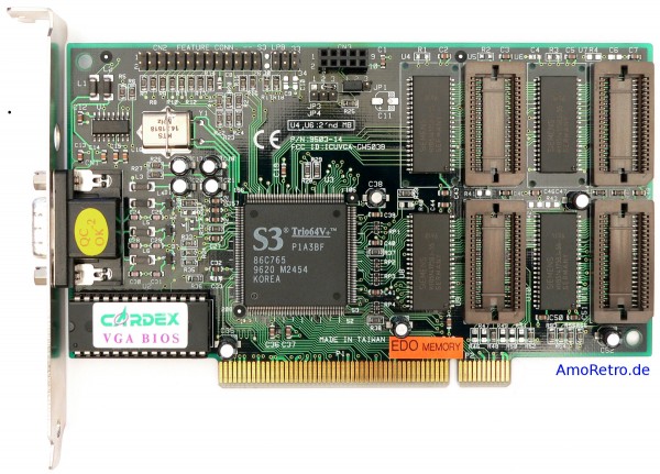 Der Trio64V+ ist einer jener Chips, die unter DOS für gute Geschwindigkeit und Kompatibilität sorgen. Es handelt sich um eine 2MB Karte, die man auf 4MB aufrüsten kann. Unaufgerüstet würde ich diese Karte heute nicht mehr im Retro-Rechner einsetzen, zumindest dann nicht, wenn auch Windows betrieben werden soll. Dafür ist dann der 2MB große Bildspeicher einfach zu klein um Auflösungen darzustellen, mit denen man heute zufrieden ist.